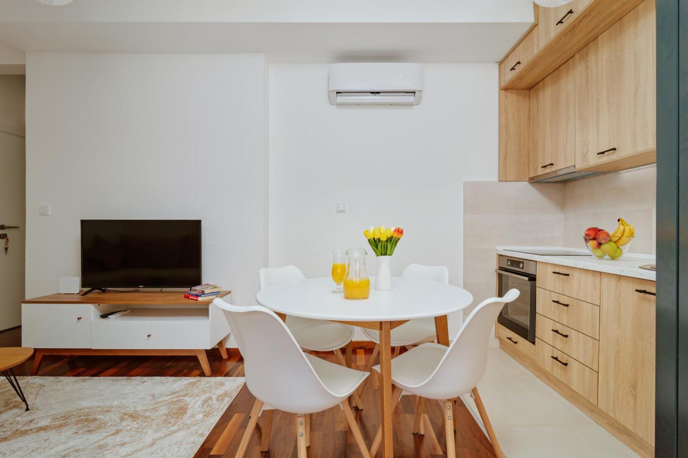 One-Bedroom Apartment. This air-conditioned apartment consists of 1 living room, 1 separate bedroom and 1 bathroom with a shower. The well-equipped kitchen features a stovetop, a refrigerator, a dishwasher and an oven. Featuring a balcony with sea views, this apartment also provides a washing machine and a flat-screen TV with streaming services. The unit offers 2 beds.