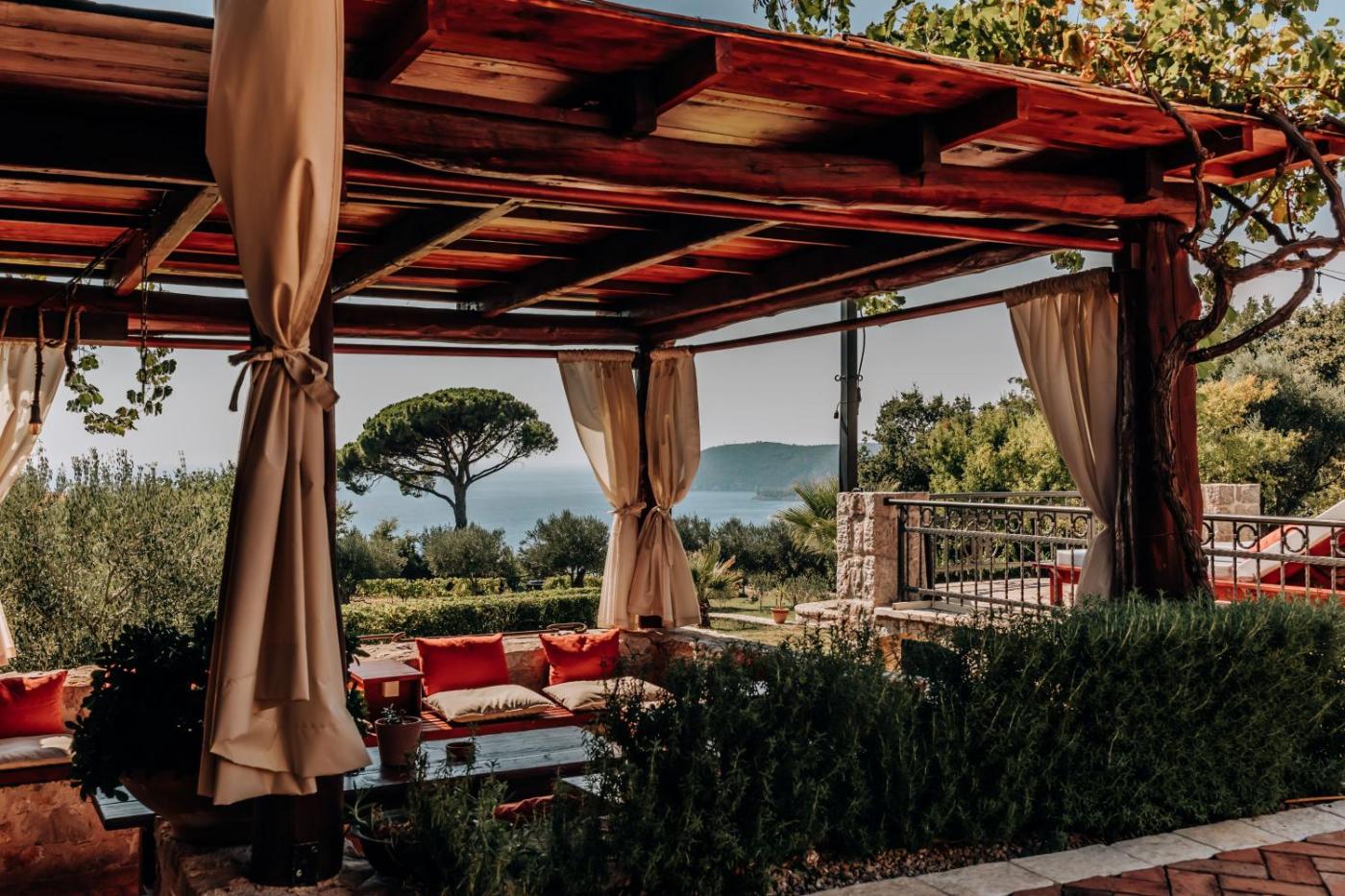 Nestled in a 17th-century building, Talici Hill – Rustic Villas” consists of 5.000m2 private grounds, a 400m2 Superior villa with 7 bedrooms sleeping up to 18 guests, heated infinity swimming pool with sunbeds and pool cabanas, event room, BBQ facilities with a big dining table, a lounge area with a TV, firepit, sea view wooden swing, family-friendly areas, etc.