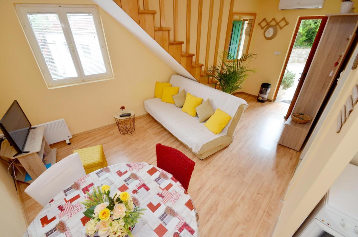 Apartment - Split Level. Featuring a private entrance, this air-conditioned apartment comprises 1 living room, 1 separate bedroom and 1 bathroom with a bath and a shower. Meals can be prepared in the well-fitted kitchen, which comes with a stovetop, a refrigerator, kitchenware and an oven. Boasting a terrace with sea views, this apartment also provides a washing machine and a flat-screen TV with cable channels. The unit offers 3 beds.